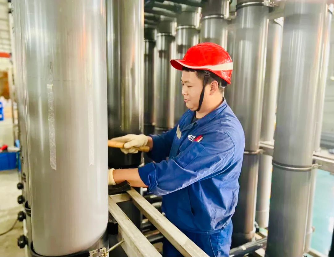 2月初恰逢春節(jié)假期,為確保項(xiàng)目生產(chǎn),母寶貴犧牲小家保大家,堅(jiān)持奮斗在一線,確保春節(jié)期間“三安全”達(dá)標(biāo)。設(shè)備入場后,出現(xiàn)設(shè)備運(yùn)行壓力過高,膜柱冒水,設(shè)備產(chǎn)水回收率達(dá)不到額定要求等問題,母寶貴主動帶領(lǐng)現(xiàn)場人員查找原因并維修膜柱,積極聯(lián)系調(diào)試部和膜車間人員到現(xiàn)場處理,最終設(shè)備良好運(yùn)行。