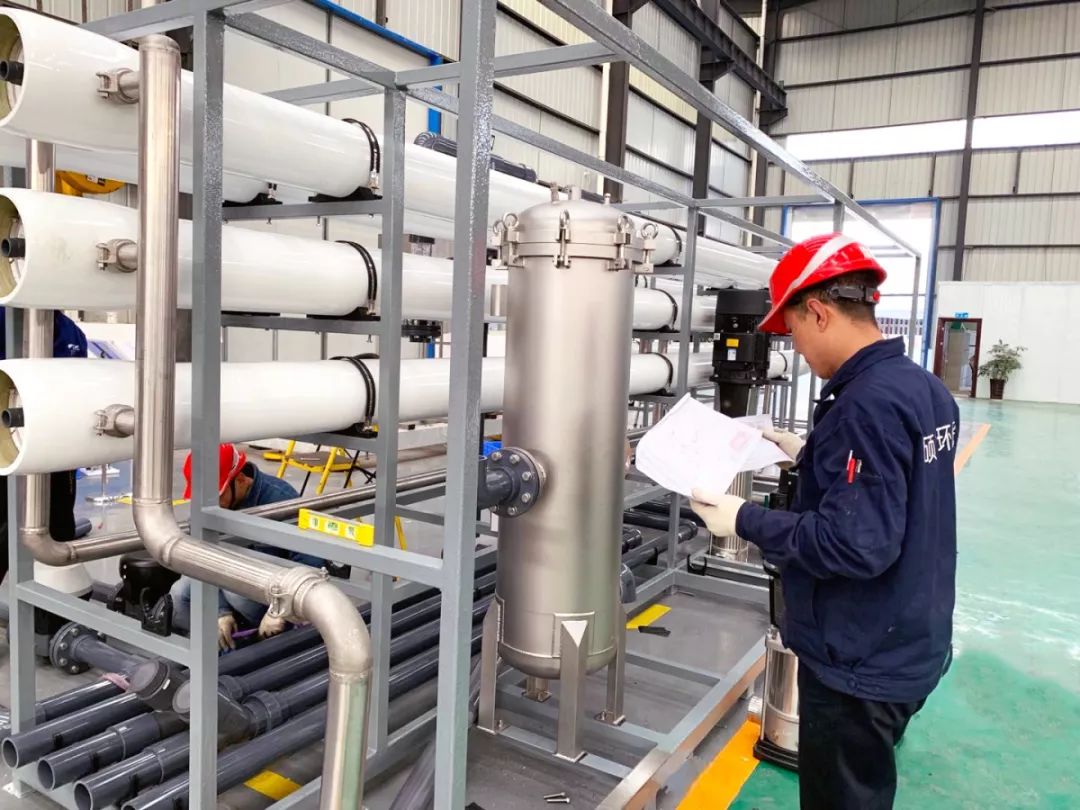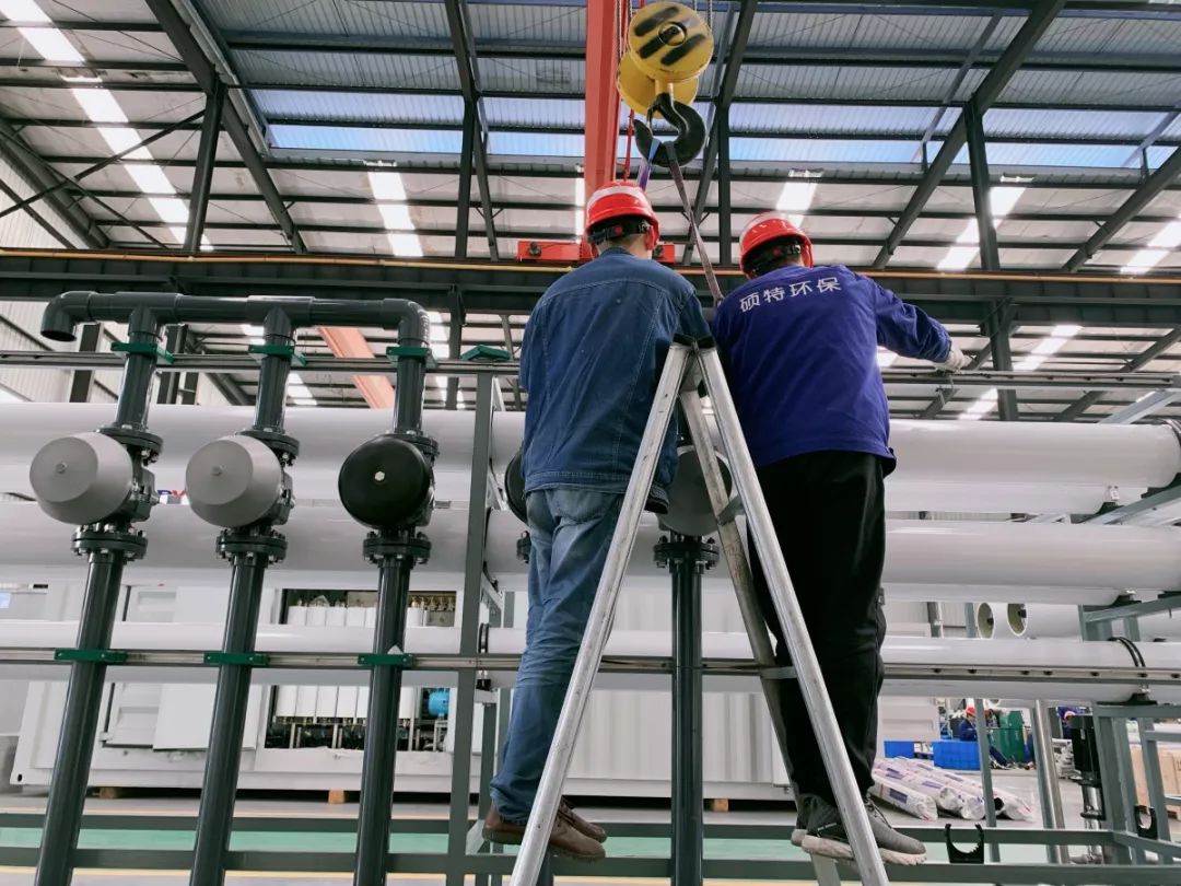 1.四套DTRO設備底架單元、儀表管路單元01、02及高壓泵單元支架全部上撬安裝已完成,過濾器安裝及膜柱裝配已完成。