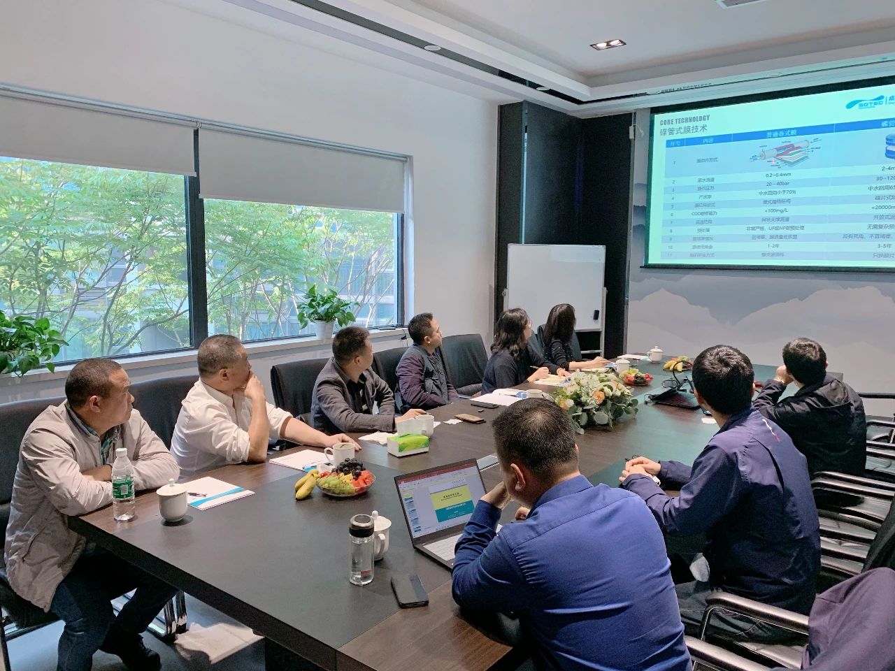 下午,云南能投生物資源投資開發(fā)有限公司領(lǐng)導(dǎo)、技術(shù)人員等一行六人到我司進(jìn)行了技術(shù)交流,我司副總黃興俊、技術(shù)總監(jiān)劉揚帆分別對公司總體情況和核心技術(shù)(高壓碟管式膜、高壓寬管式膜)進(jìn)行了介紹。黃總詳細(xì)講解了涵蓋和輻射領(lǐng)域的工程案例,其中針對自貢市城鄉(xiāng)垃圾處理中心滲濾液全量處理項目進(jìn)行了重點介紹,設(shè)備滲濾液處理能力為450t/d,最大處理能力可達(dá)500t/日,設(shè)備運行期間,處理進(jìn)水量超過40000m³,采用的垃圾滲濾液(濃縮液)非蒸發(fā)全量處理工藝由我司研發(fā)團(tuán)隊歷時五年攻關(guān),經(jīng)過多次驗證,開發(fā)出的一種專門用于垃圾滲濾液處理的專利性新型環(huán)保處理技術(shù)。我司固廢事業(yè)部總經(jīng)理文昊深則對公司新的業(yè)務(wù)領(lǐng)域-固廢處理進(jìn)行了詳細(xì)介紹,我們將更加全面的參與到環(huán)保水處理的各個領(lǐng)域。會議中大家對各個領(lǐng)域的廢水處理難題進(jìn)行了深入討論和交流。