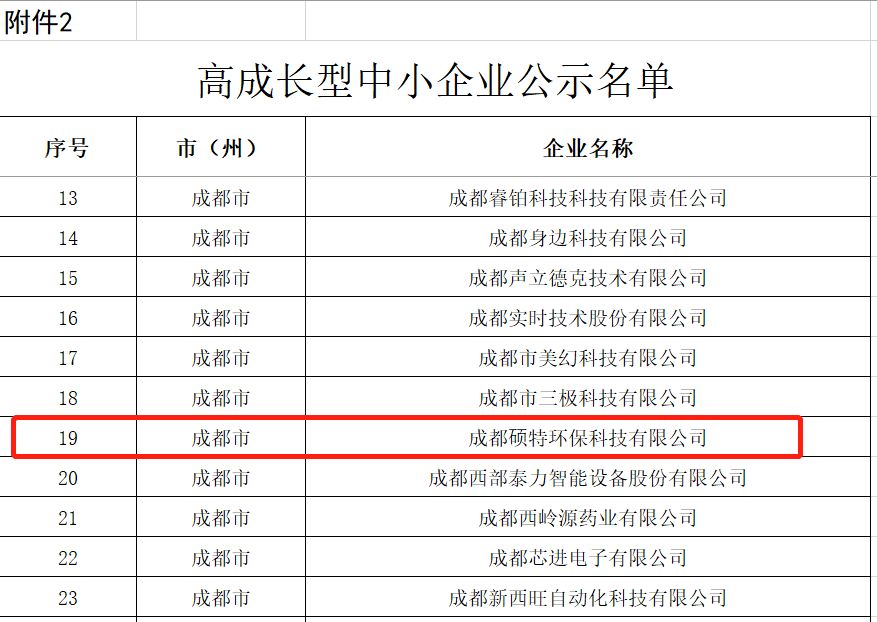 12月24日,由四川省經(jīng)濟(jì)和信息化廳組織的2020年度重點(diǎn)中小企業(yè)申報(bào)工作評(píng)選結(jié)束,成都碩特環(huán)保科技有限公司通過復(fù)核,進(jìn)入高成長(zhǎng)型中小企業(yè)公示名單。