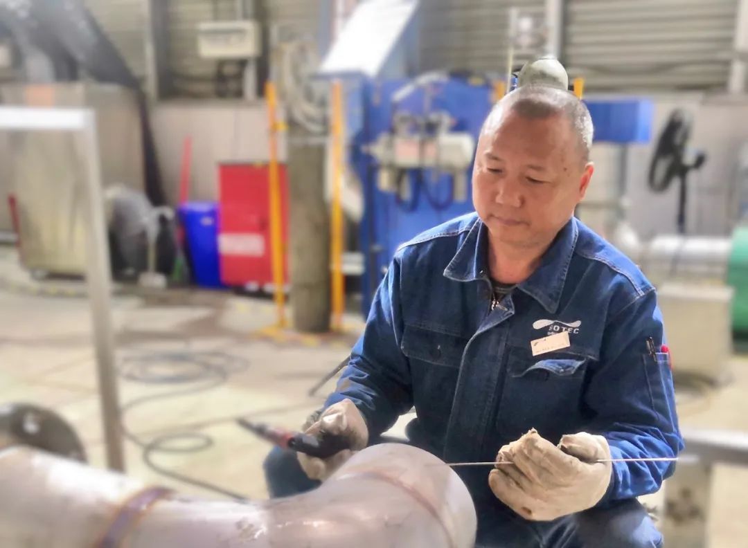 八月,正值酷暑,公司焊接部門接到焊接計劃后,繆家彬一直忙碌在變形量控制的方案中,通過多次嘗試、總結(jié)、分析發(fā)現(xiàn)焊縫焊接問題后,及時采取措施,既能夠保證管路焊接焊透、焊縫雙面成型,又能保證總體尺寸誤差在1mm以內(nèi)。九月,高壓管路正式投產(chǎn),管路出現(xiàn)多路分叉及多種角度的難題,繆家彬就地取材,利用邊角余料,制作出適用各種管路的焊接工裝,并申報專利。目前項(xiàng)目按計劃已完成NF和RO管路焊接任務(wù),UF管路正在焊接制作中,力爭保質(zhì)保量按時完成項(xiàng)目交付任務(wù)。