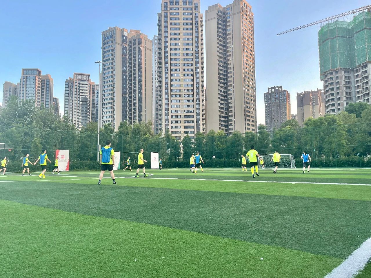 活動現(xiàn)場氣氛活躍,球場上同事們盡情揮灑汗水,過人、傳球等各種技巧一一展現(xiàn),休息區(qū)的同事也熱情地吶喊歡呼。大家?guī)е矏偤秃顾Y(jié)束了足球交流活動,并期待著下次活動的開展。